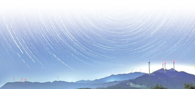 党的十八大以来,美丽中国建设迈出重大步伐,人民群众的生态环境获得感、幸福感、安全感显著增强。图为星空下的福建省永安市贡川风电场。 |
